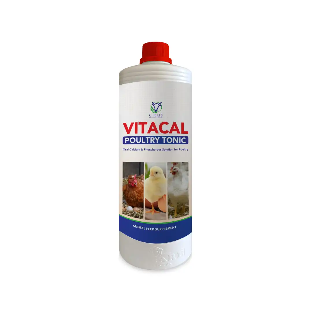 VITACAL is an enriched calcium and phosphorus oral solution for optimization of all poultry production. It ensures improved egg quality production and stronger bones for the maintenance of muscle integrity in layers, broilers, and turkeys. The provided calcium-phosphorous balance ensures a maximum calcium bio availability for optimal production.